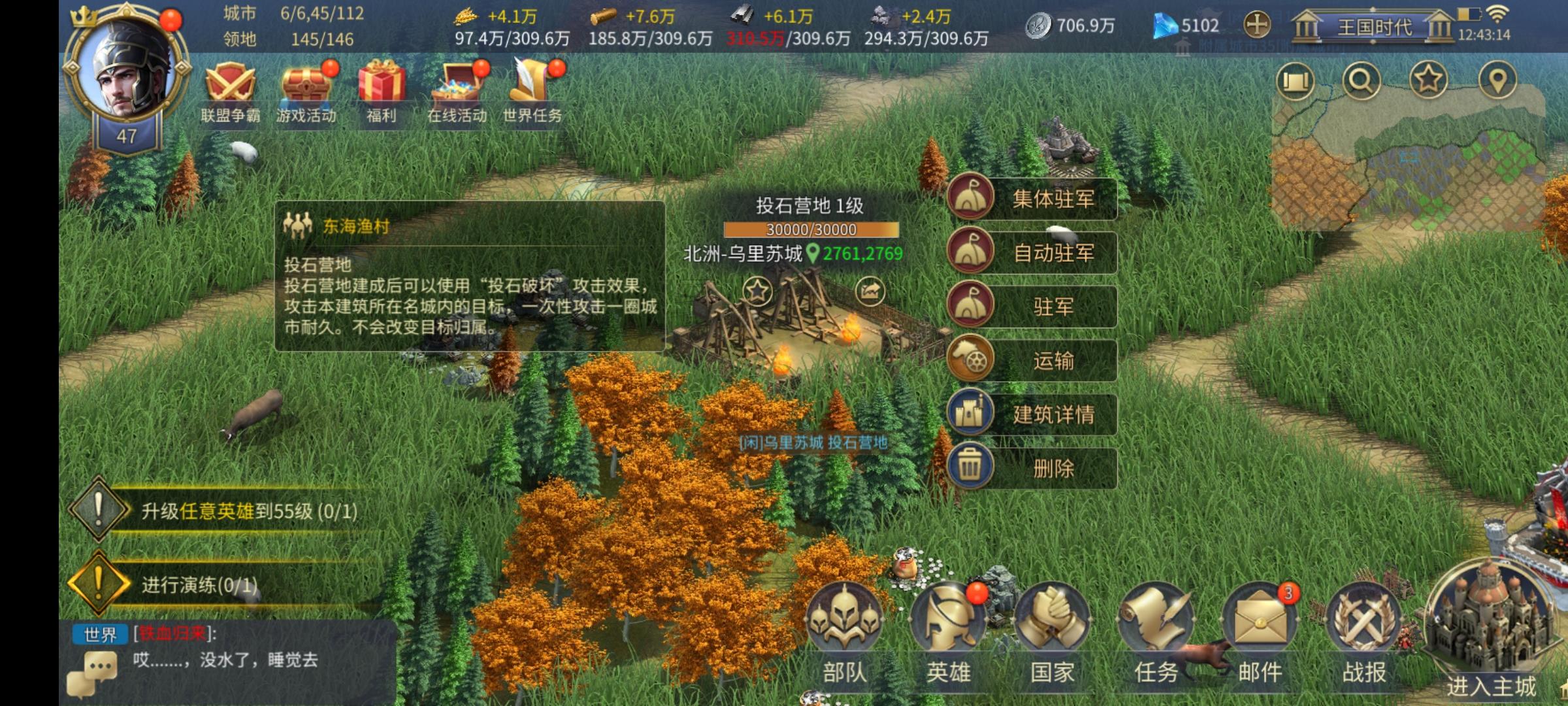 注意,投石车只能建立在本方名城内,效果不是那么明显,可以在双方焦灼之时使用,也许有奇效!