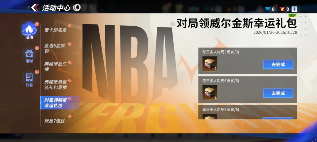 有新球星登场,咱们的幸运礼盒也必须安排!1月26日—1月28日完成对局任务,即可领威尔金斯幸运礼包,3天能够喜提15个礼包,甚至有机会可以开出“80年代鹰王”本体!吉哥坐等兄弟们传来喜报!