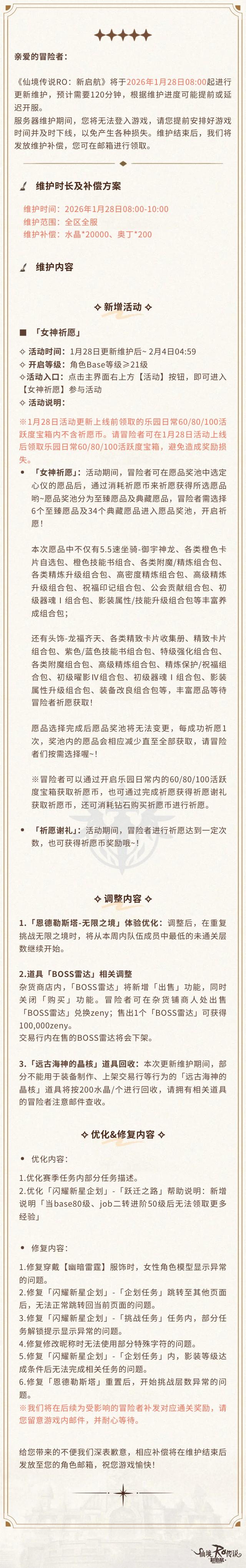 更新公告 | 1月28日更新维护公告