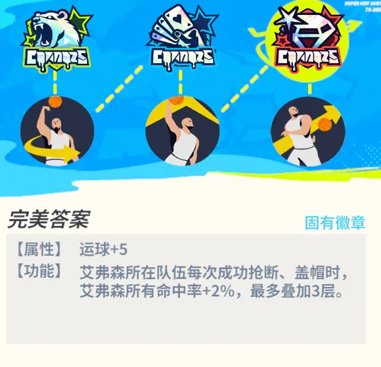 艾弗森的伙伴孟小样、扎普、兔头小子会分别为其提高三分、抢断和运球属性。