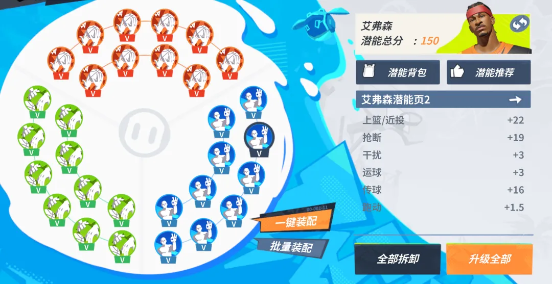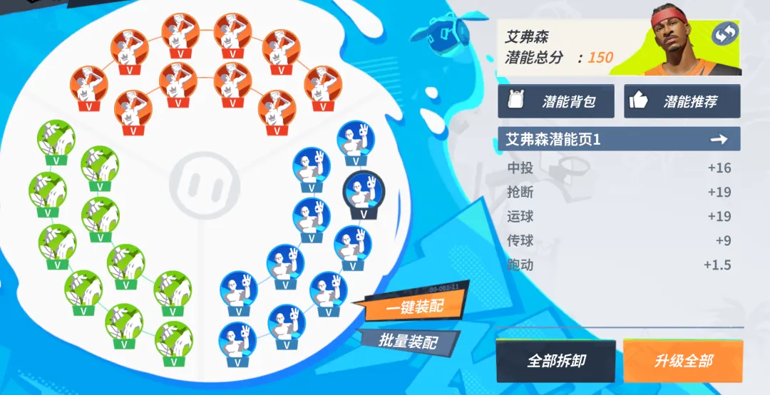 这套潜能主要增强了艾弗森的上篮/近投、抢断和传球能力,攻框威胁增加,得分简单有效。适合偏向篮下进攻和团队配合的街球手使用。
