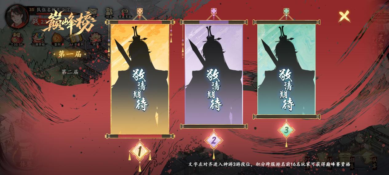 荣耀时刻: 未晋级的侠客将继续在段位赛中磨练技艺,而晋级的强者将代表本赛区的最高战力,在次日与其他获得巅峰资格的玩家进行巅峰对决。