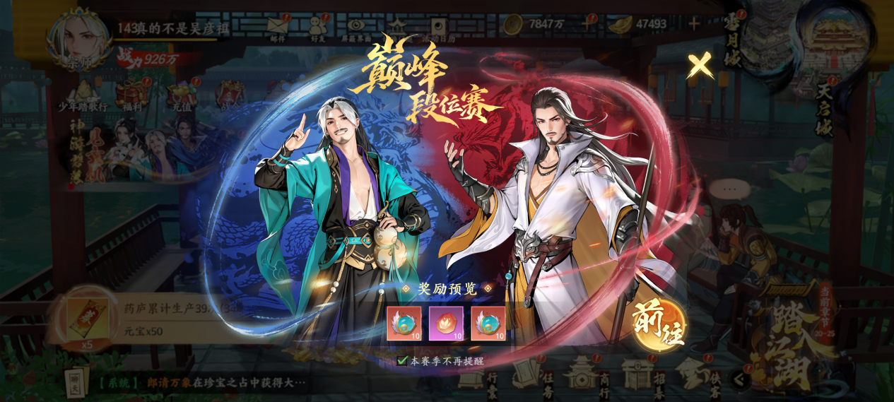 大侠,剑已出鞘,只待君来! 立刻上线,组建你的最强阵容,向着“神游”段位发起冲击吧!