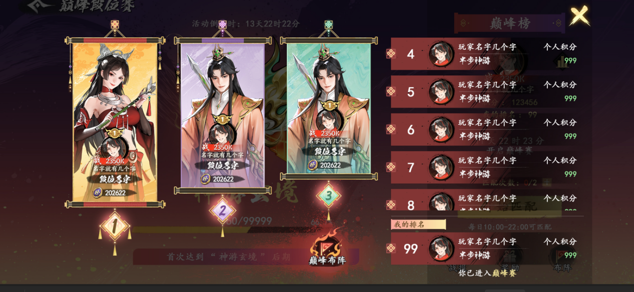 全服瞩目: 巅峰榜单将向全服展示,所有玩家皆可见证王者的诞生。