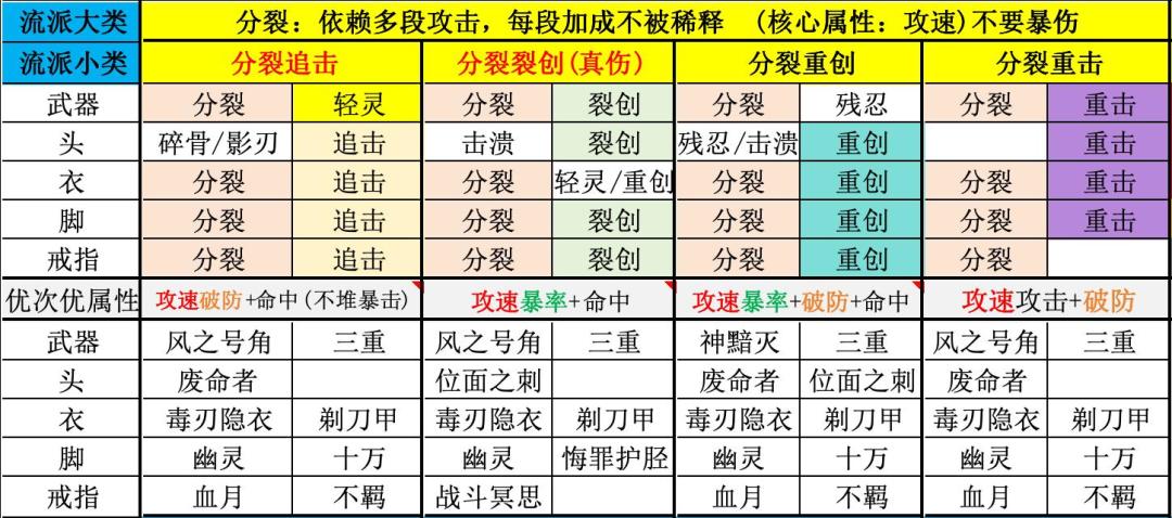 又可细分为分裂追击(不要暴击)、分裂裂创(真伤)、分裂重创、分裂重击4个小分支。