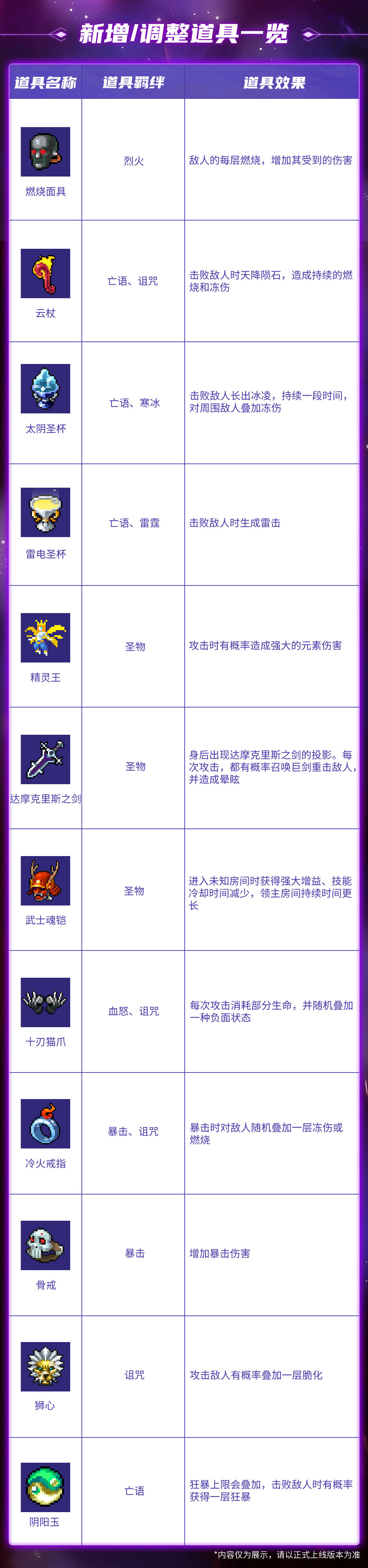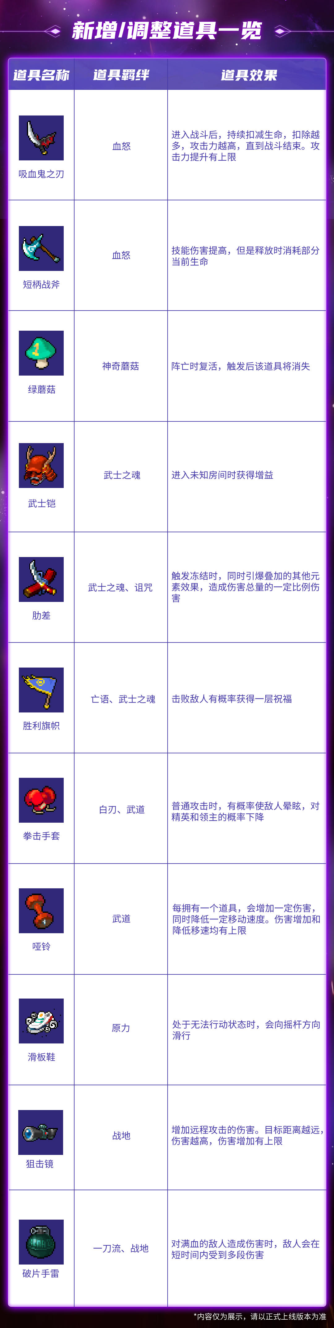道具上我们也进行调整,新增了部分道具,对原有道具进行重做或调整。在v3.0.0版本中,围绕道具羁绊系统开放100件道具,其他部分道具会在后续版本陆续调整回归。