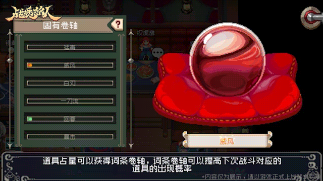新版本中,水晶球的词条卷轴更改为羁绊词条,词条卷轴可以提高下次战斗时对应羁绊的道具出现概率。