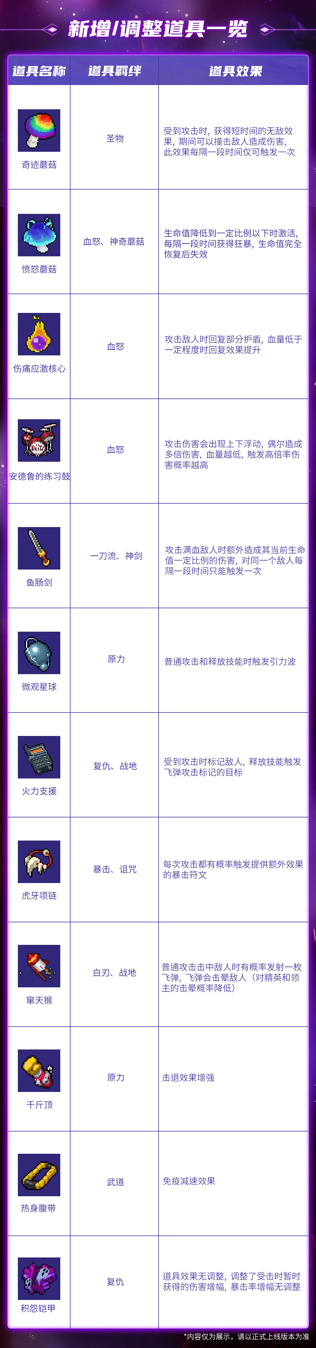 道具特殊重铸回归,奇迹蘑菇、精灵王、达摩克里斯之剑、武士魂铠由特殊重铸合成。