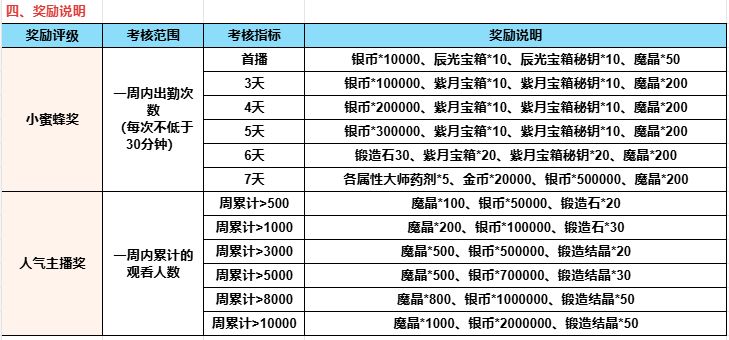 3、玩家主播的数据及奖励核查无误后,将在3-5个工作日为各位主播发放相应奖励