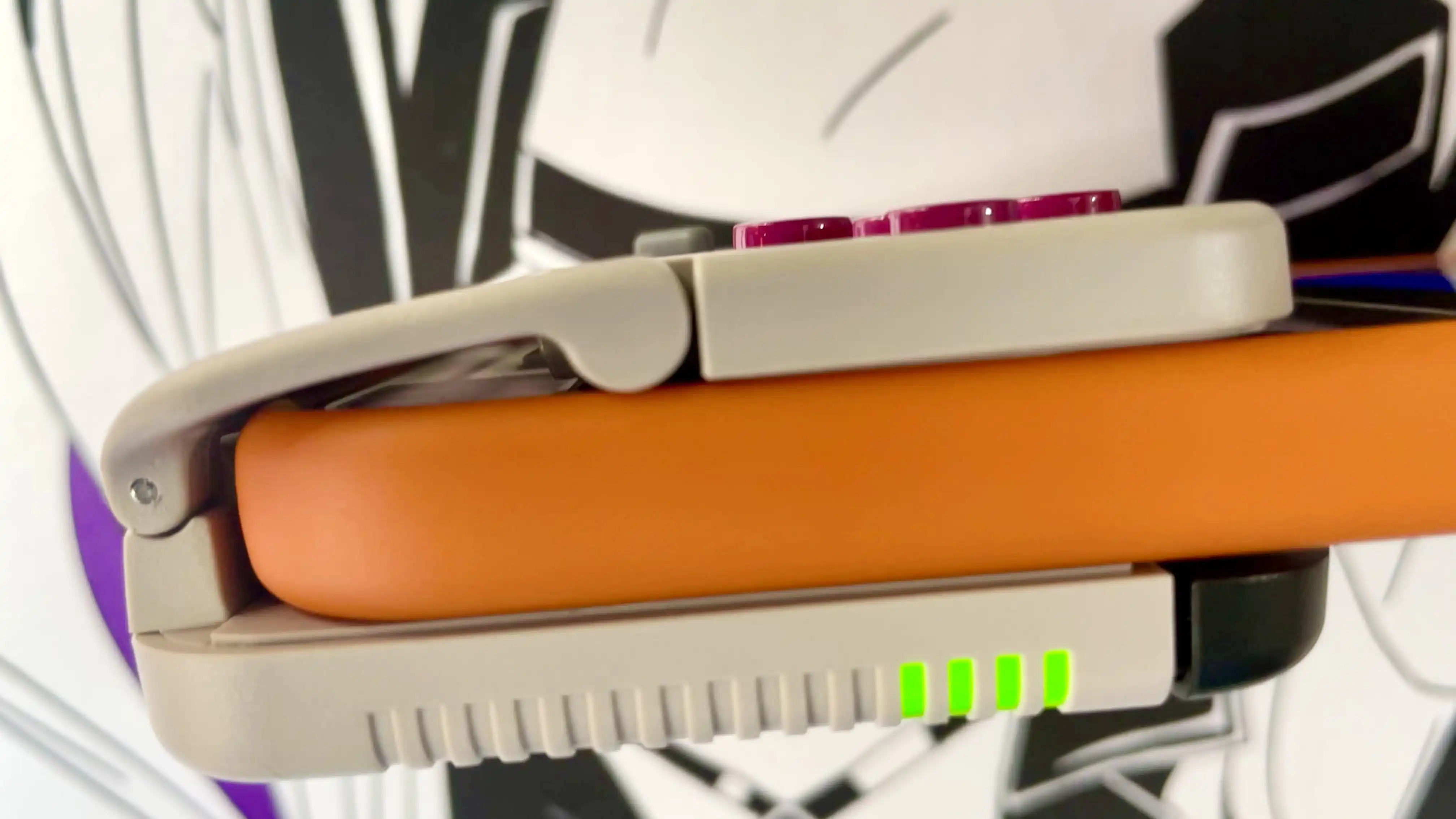 塔可的续航表现也足够扎实,内置 600mAh 电池,完全不用频繁充电。更贴心的是,底部预留了凹槽,充电时数据线可以直接插手机,不会互相干扰,彻底解决了玩游戏时的续航焦虑。手柄外壳边缘做了圆润的倒角,背面还做了防滑处理,握在手里很稳,不会打滑。