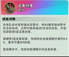 绝卡被动,全体队友包含自己,一共7位,造成伤害即可有概率获得剑意、且触发协同攻击,且能提供小剑仙50攻速,超模数值,现版本多段伤害各种绝技古宝神兵,触发叠叠乐
