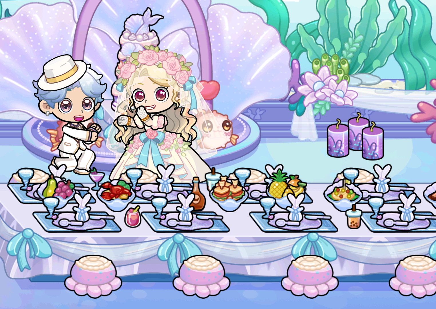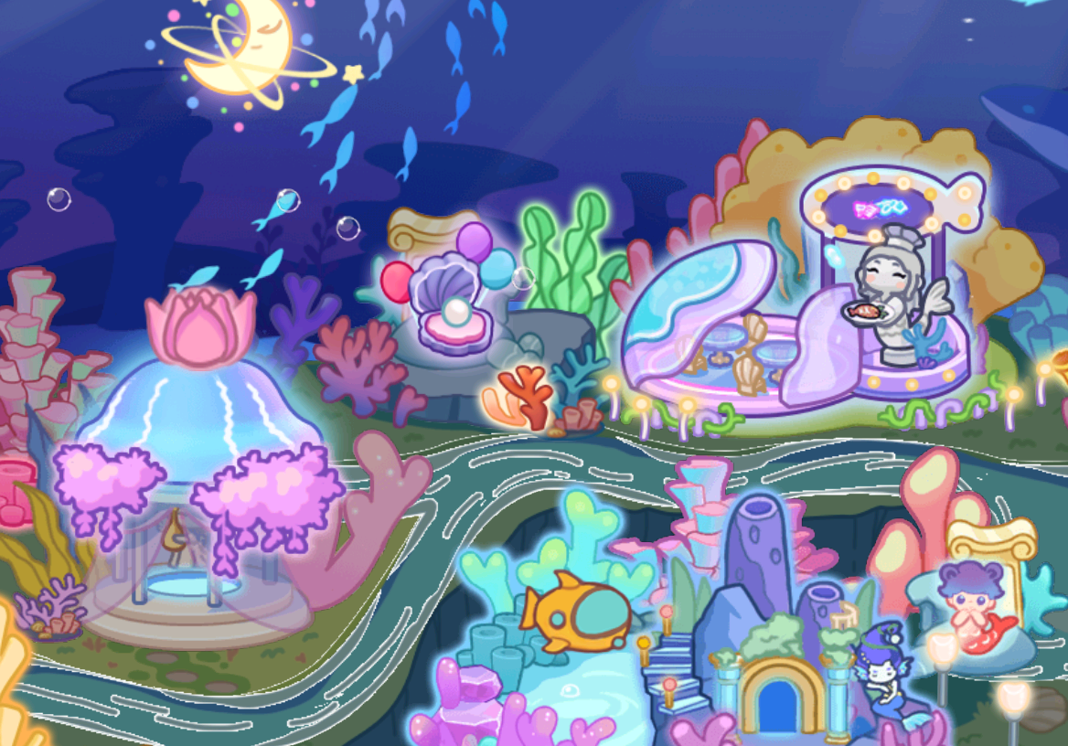 美人鱼之家:在梦幻的美人鱼之家,用餐区被装点得格外美丽。美人鱼姐妹正热情地招待着前来参加派对的朋友们。