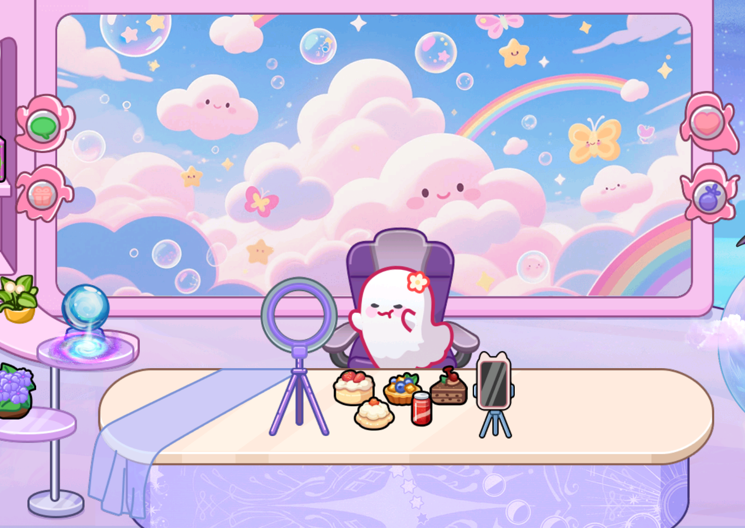 魔法厨房直播间:在软乎乎的糖霜小镇,藏着一间飘着甜香的 “魔法直播间”—— 暖黄色的灯光裹着藤蔓装饰,像把整颗太阳揉进了甜点屋。