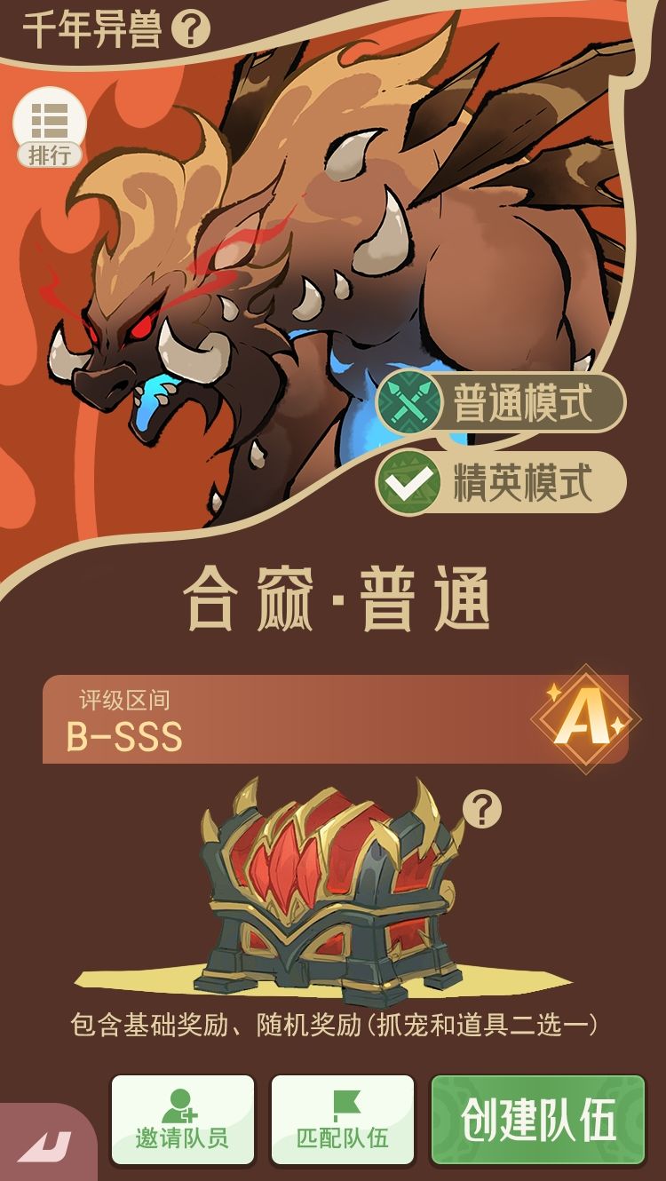 - 千年异兽关卡调整为 普通关卡 和 精英关卡 两种,可自选挑战关卡;