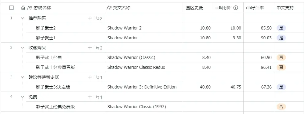 推荐购买影子武士1和影子武士2,经典版和经典重制版收集党或者是想要体验复古游戏的可以尝试购买,影子武士3建议等游戏新史低。