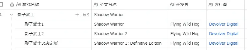 影子武士1,影子武士2,影子武士3:决定版均由Flying Wild Hog开发,Devolver Digital发行