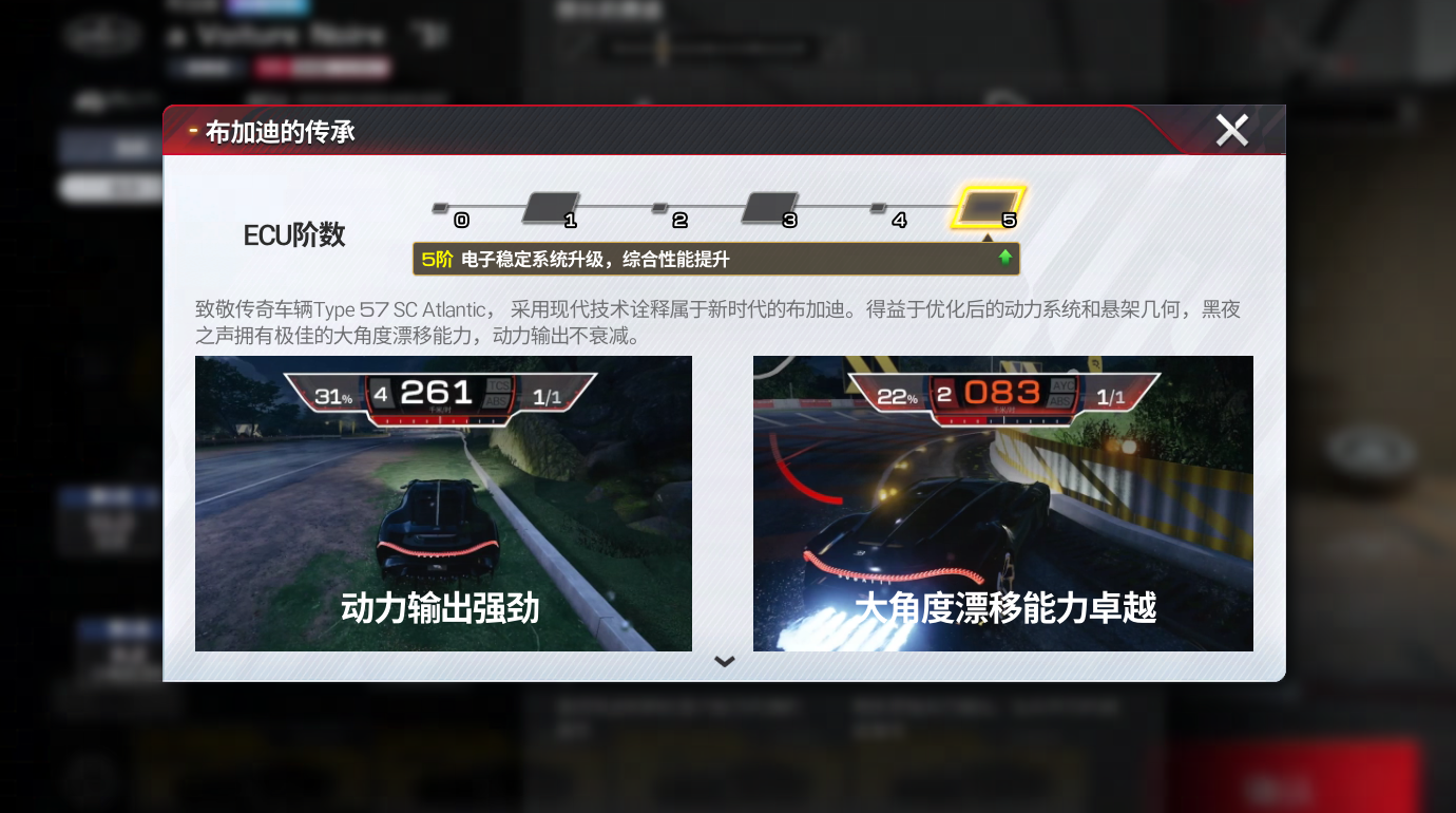 - 持续输出不衰减:传承自Type 57 SC Atlantic的赛道精神,通过现代技术重新诠释。优化后的动力系统确保了在大角度漂移过程中,动力输出依然稳定、不衰减,实现漂移与加速的无缝结合!