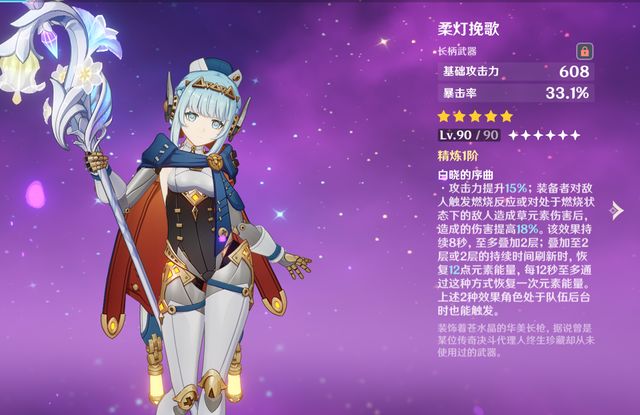 主词条提供基础攻击力和百分比攻击力,完全契合伊涅芙的需求,同时,武器效果,还能大幅提升月感电反应伤害,伊涅芙能够全部吃满,简直就是绝配。