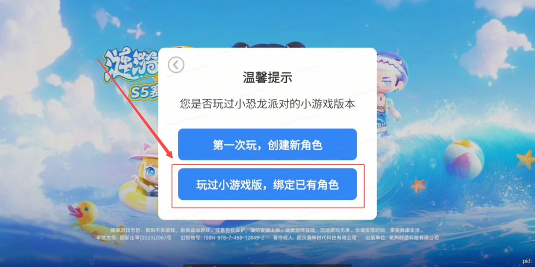 步骤 2:点击下方 [玩过小游戏版本,绑定已有角色] 注:千万不要直接点“第一次玩,创建新角色”,误创建新角色哦!