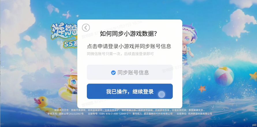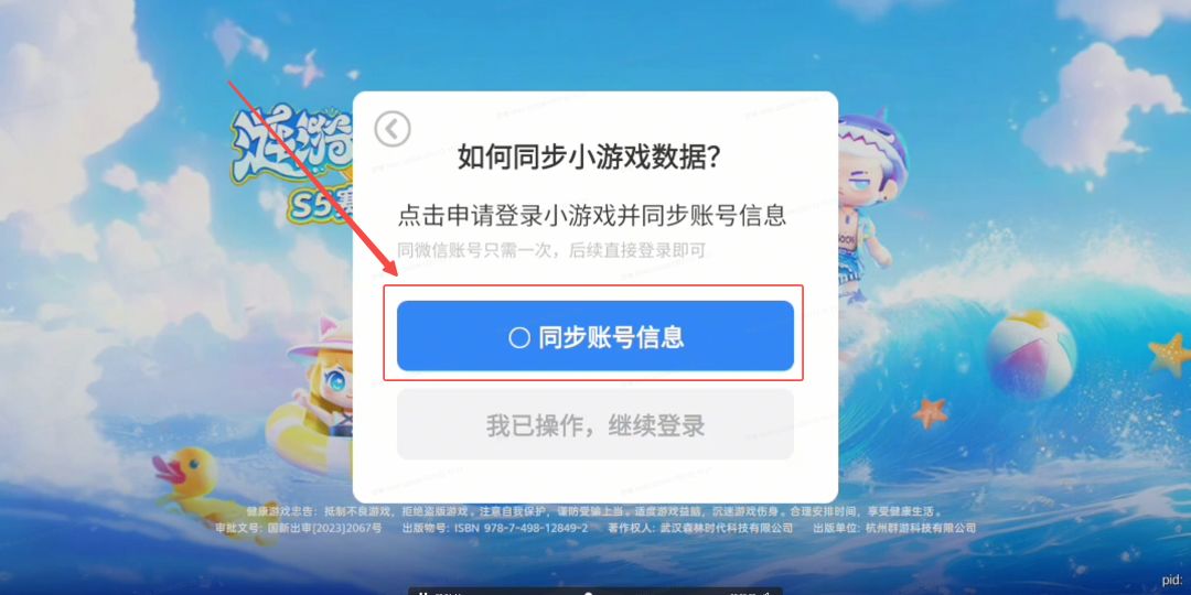 步骤 3:在弹窗中点击 [同步账号信息],此时系统会自动跳转至微信并唤起《小恐龙派对》小游戏。