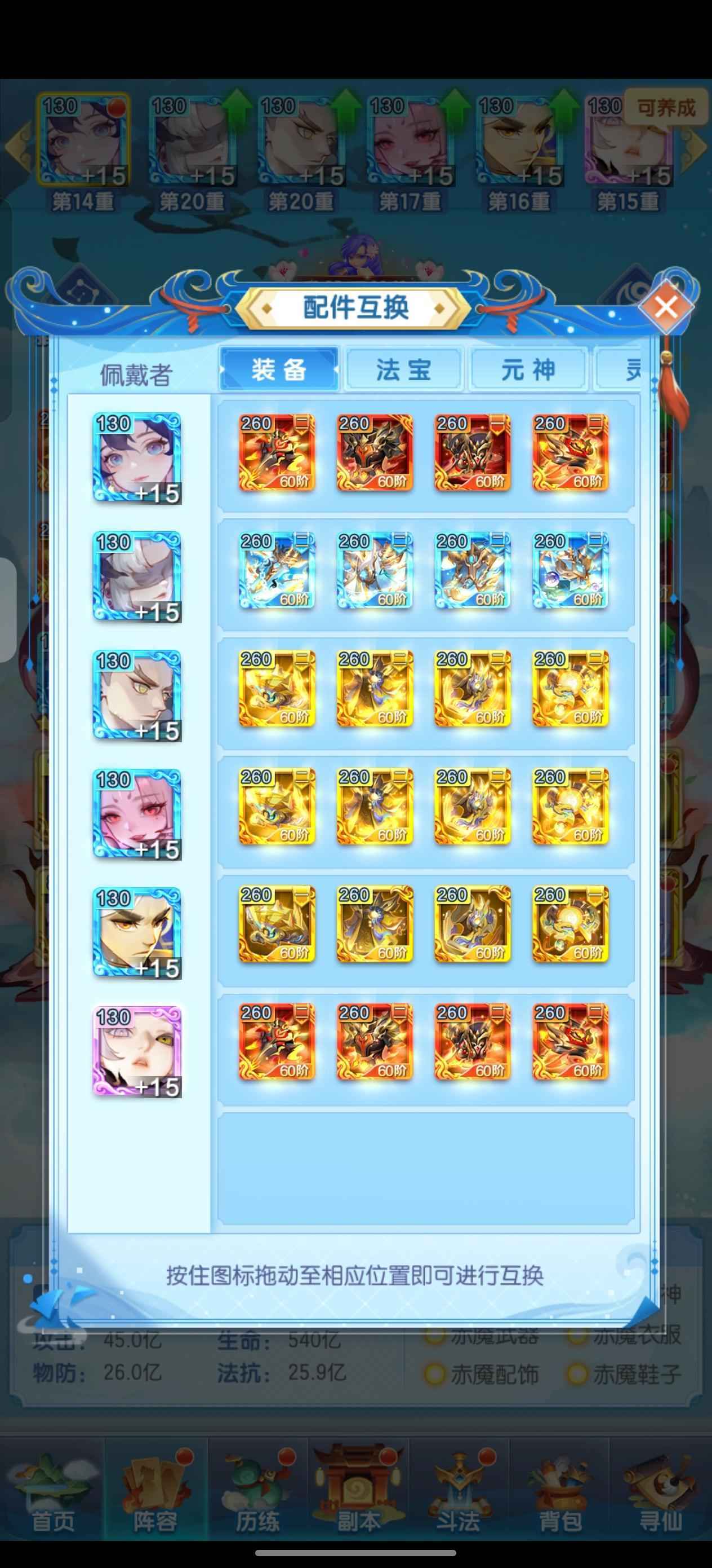 后来也是在游戏里认识了一位好朋友,我俩相约新区,打算从头开始。想着这回好好规划一把,别再像以前那样东一榔头西一棒子。真就从开服那天起,没敢断过一天档,日常红点再烦也逼着自己清干净,资源攥着精准砸,一点点肝出琉璃法宝,再到凑齐双金双赤法相的时候,那种成就感真的没法说,不是单纯战力上涨的开心,是看着自己一步步熬出来的配置,觉得所有琐碎都值了,现在也是新区v10无断档了。