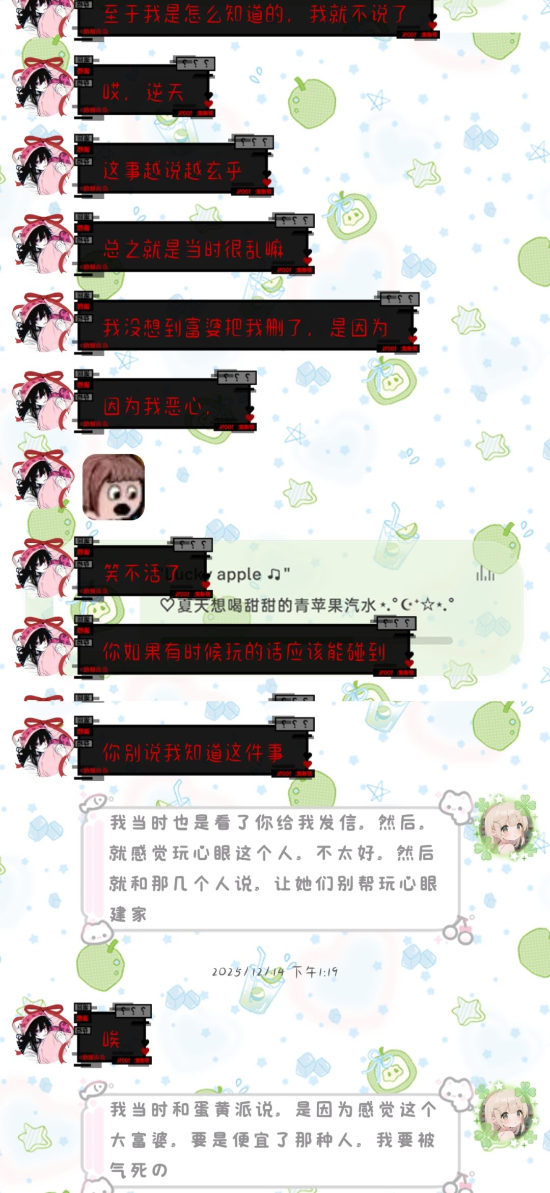 蛋黄派芝麻糊皆是我,被背刺也是我,还有d的帖子那些受害者还有帮了它一个月守夜被背刺的问花还有很多受害者,这些证据是飘子承认自己干的事的证据截图