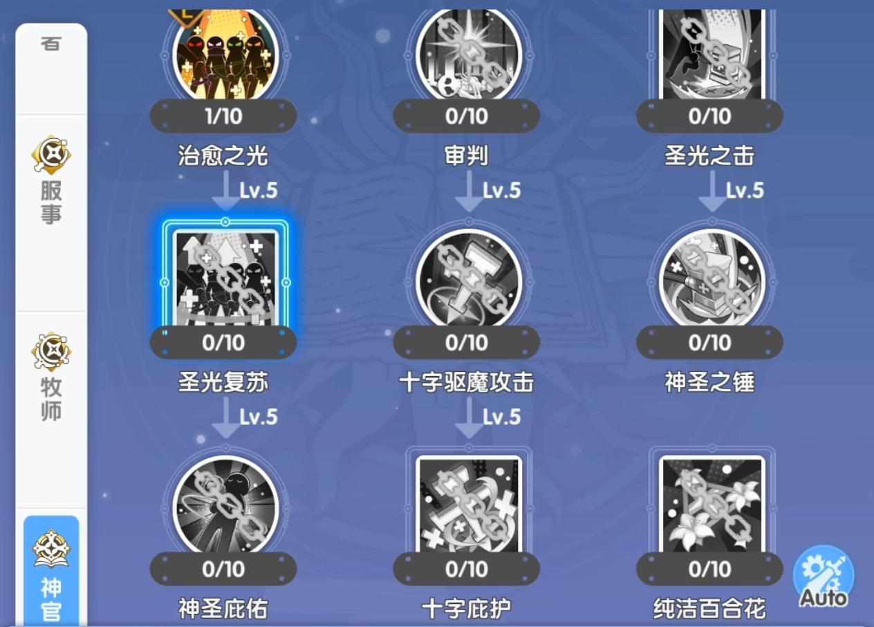 前期点数不足的情况下治愈之光点1级足以应付大部分场景,建议优先点满牺牲祈福。