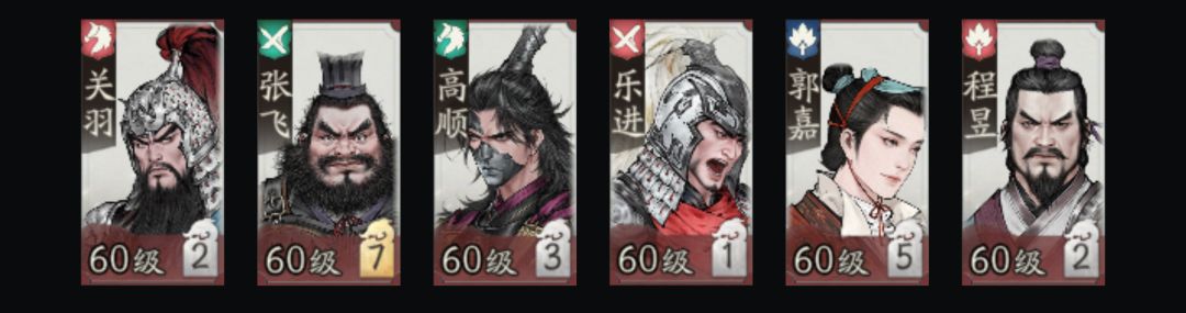 关羽、张飞、高顺、乐进、郭嘉、程昱