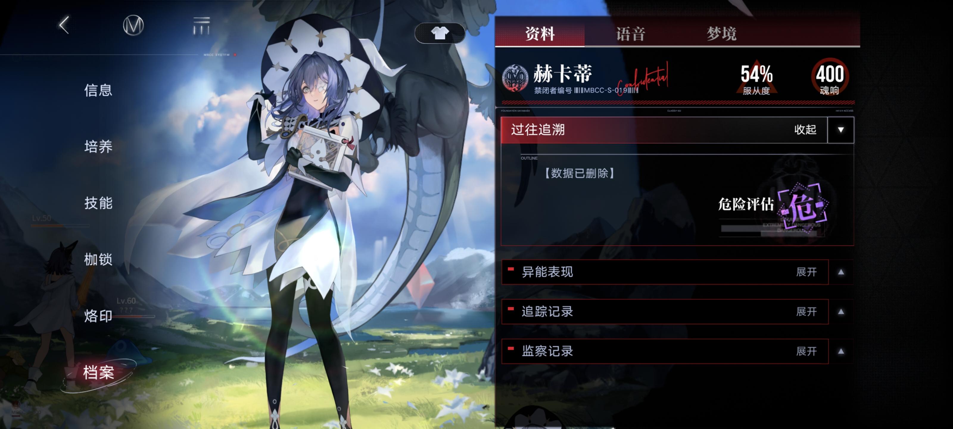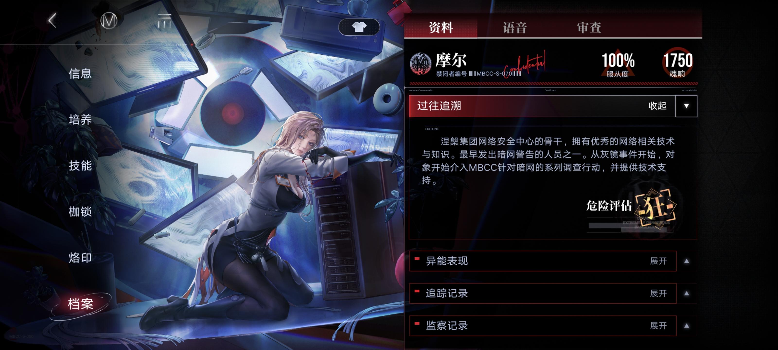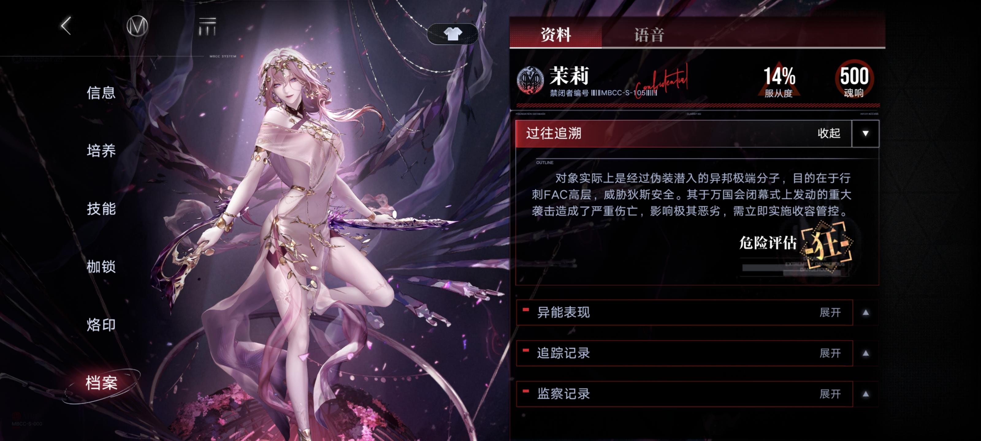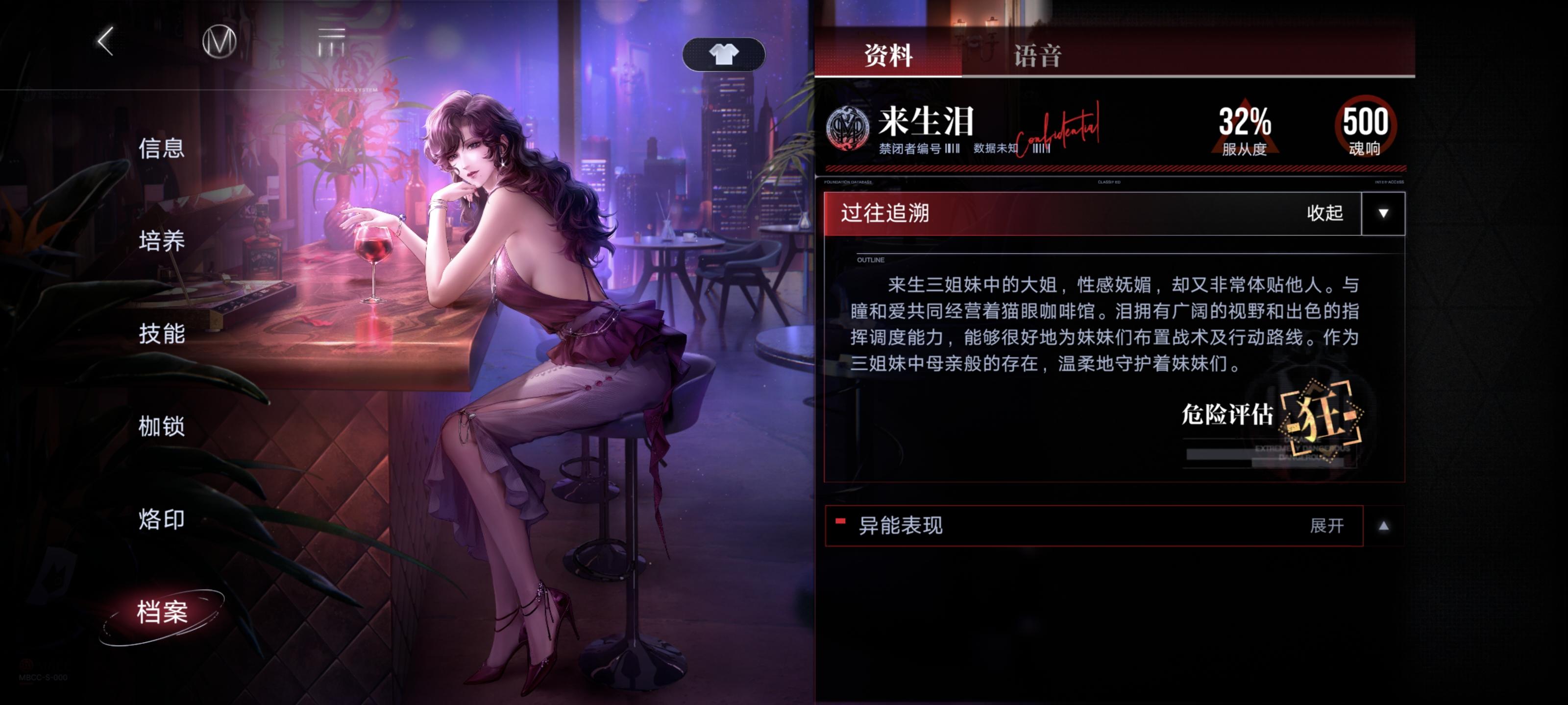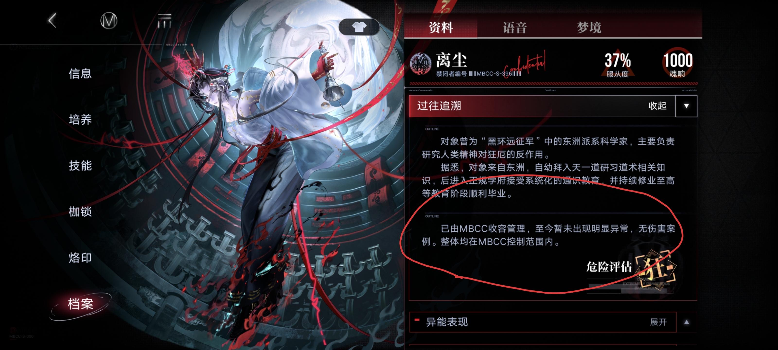 事先声明:不朽阵营禁闭者我抽了四个(离尘,源津,赫斯提亚,德雷雅),另外几个我是没有的(派尔琪雅,瓦尼菈,米格蕾),这些我看不到游戏内档案,只能在无期迷途wiki看一下做个参考,所以可能有些地方不准确。