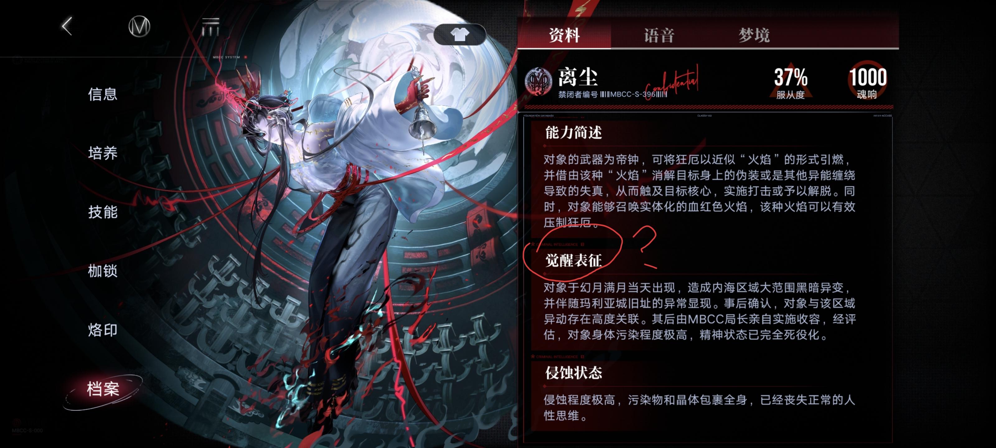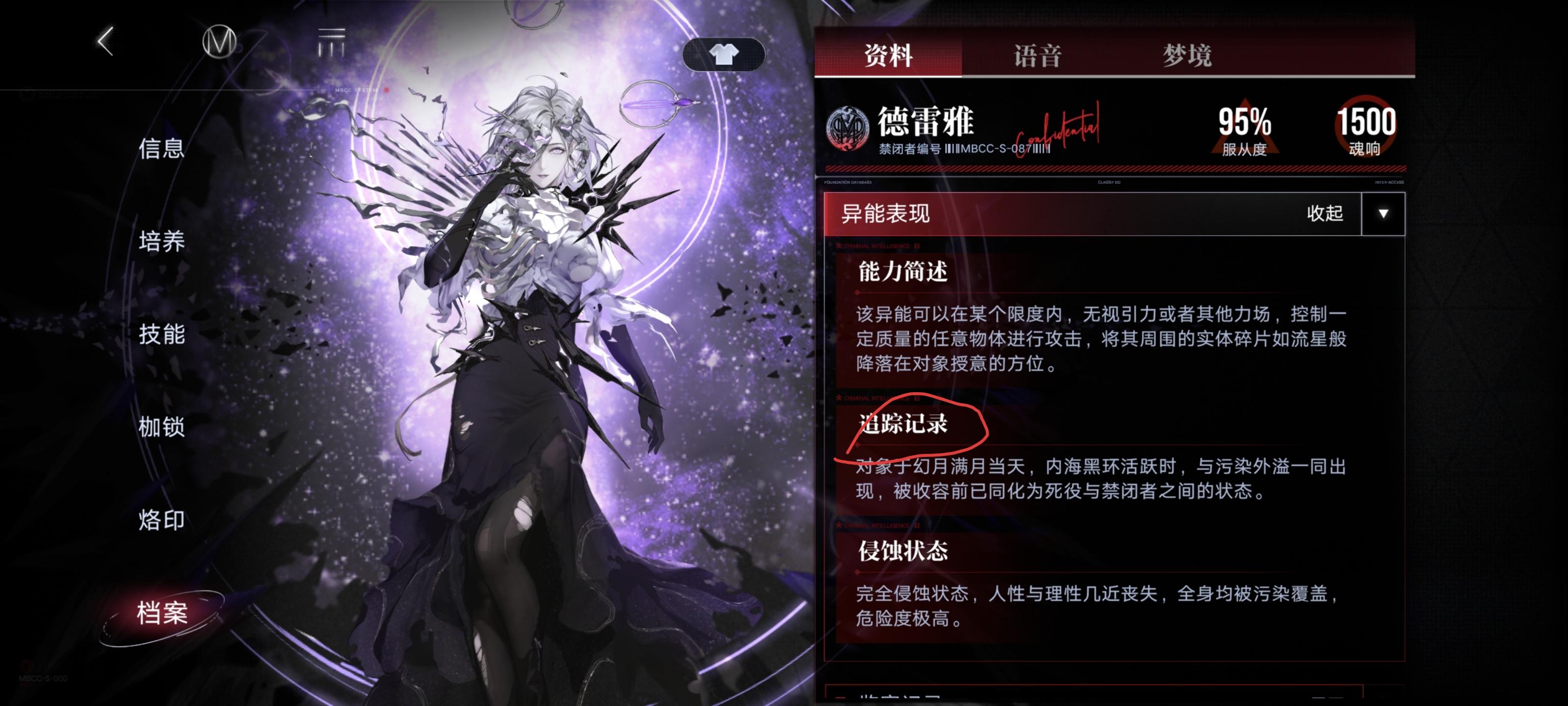 感觉是bug,因为源津、离尘的实际描述也是追踪记录,而非觉醒表征(这个一般情况下是描述一个禁闭者觉醒异能的过程)