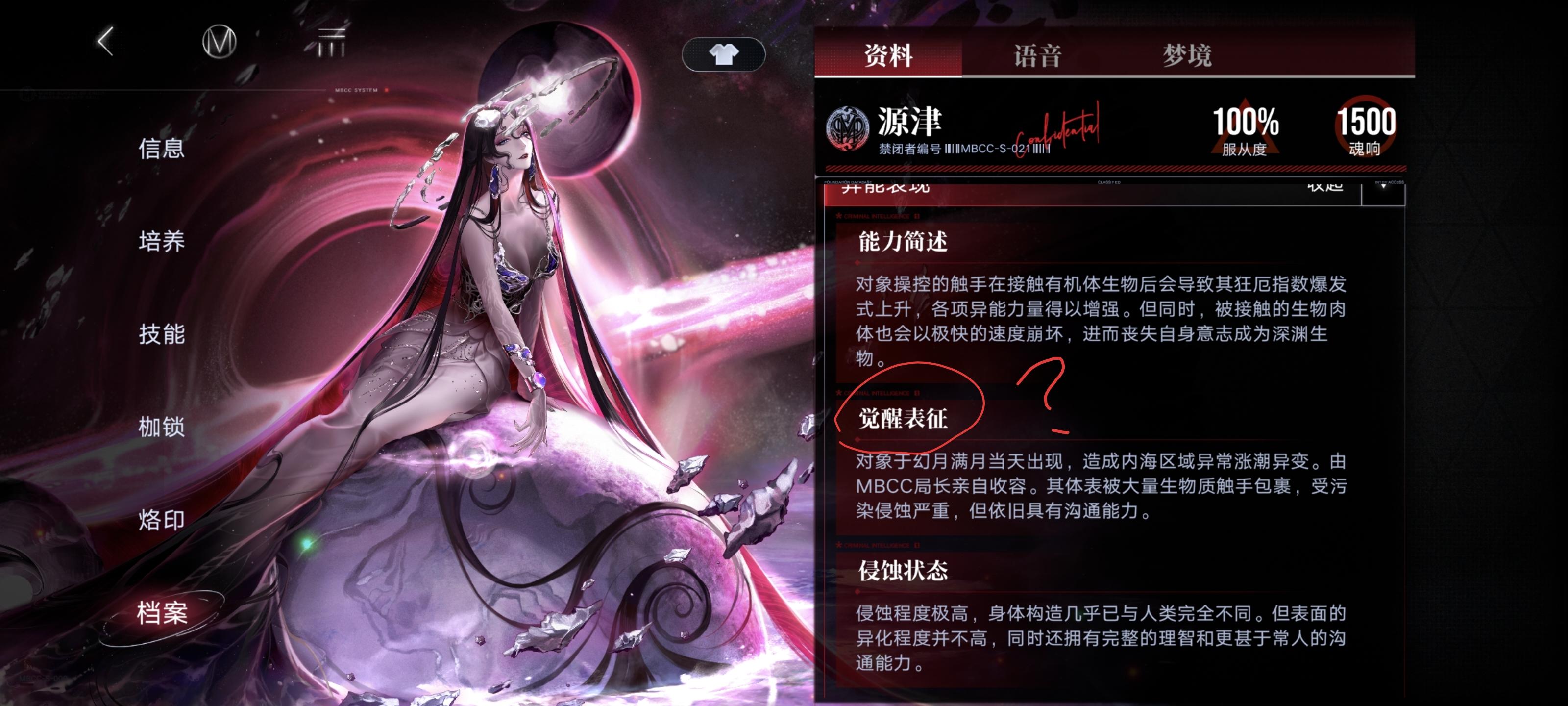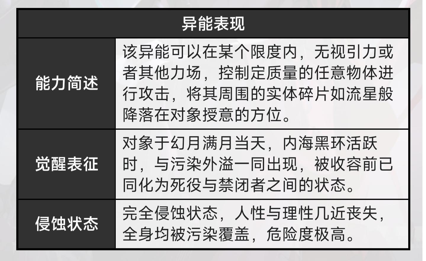 二. 早期内海不朽禁闭者“异能表现”第二条的标题是“追踪记录”而非常规禁闭者“觉醒表征”,但源津之后好像变成了“觉醒表征”