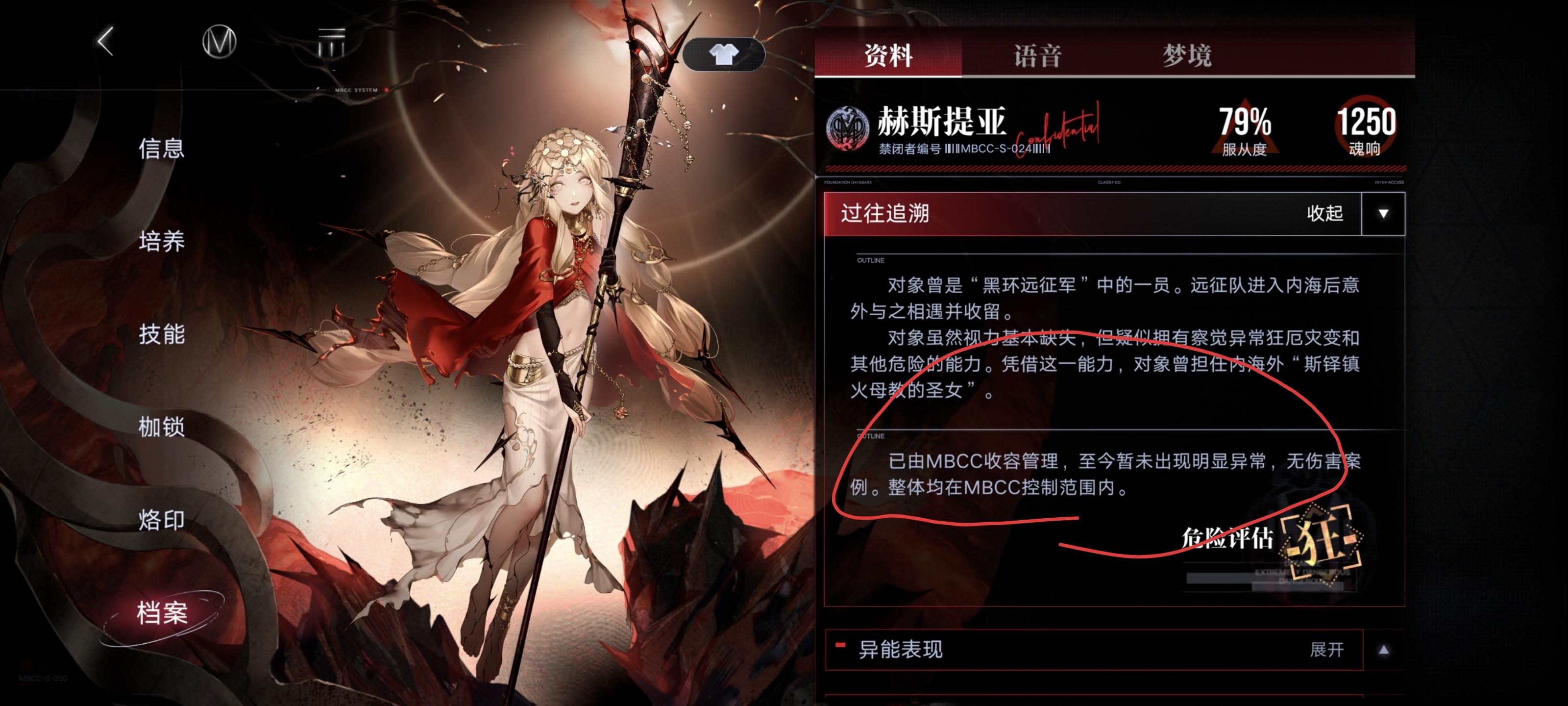 而且德雷雅在“幻月初升”是有明确提过被现在的mbcc收容的(而瓦尼菈、赫斯提亚在剧情中似乎是没有收容,派尔琪雅、源津、离尘也没有提及),所以我感觉这里没有第二条应该是个bug。