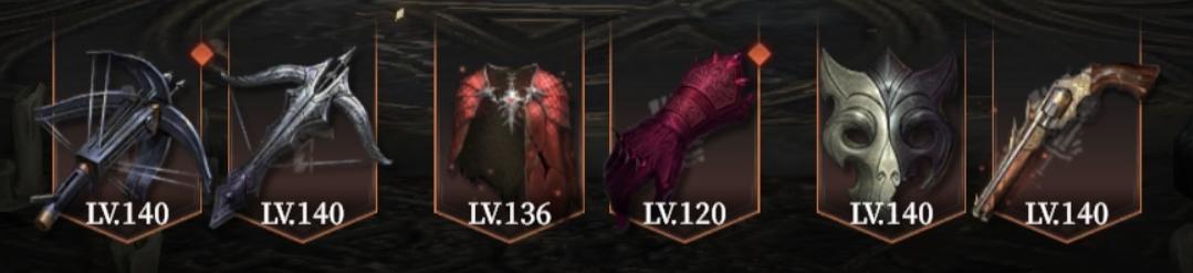 机关连弩、猎魔银弩、血云披风、猩红手套、玄兽面甲、寂灭