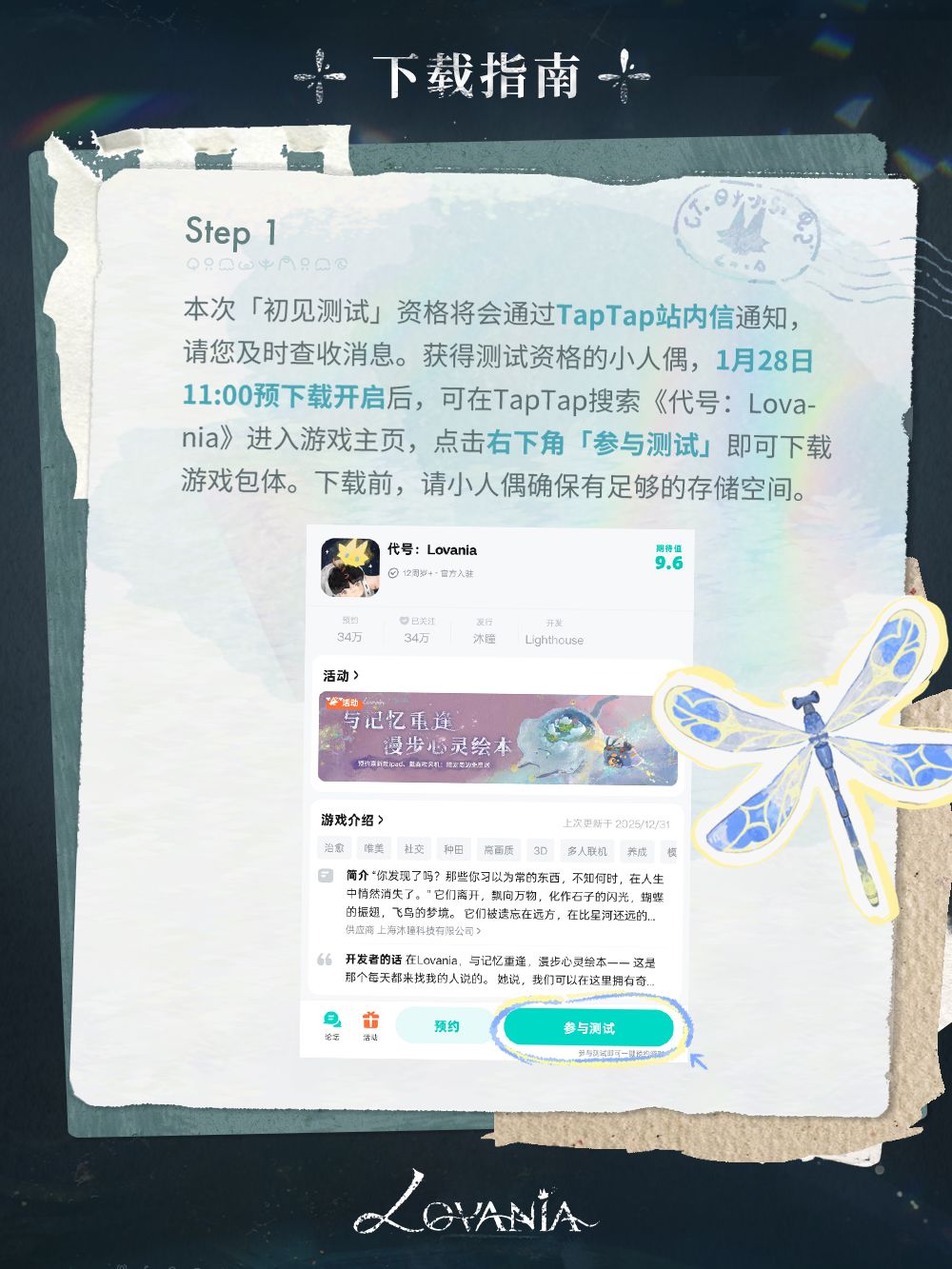 《Lovania》超超超前期「初见测试」将于1月30日开启! 请小人偶注意查收测试资格发放信息,收下这份前往不忘乡的下载及安装指南,期待与你编织珍贵的初见记忆~