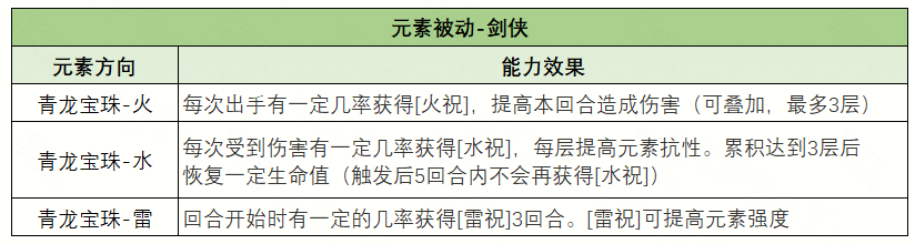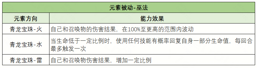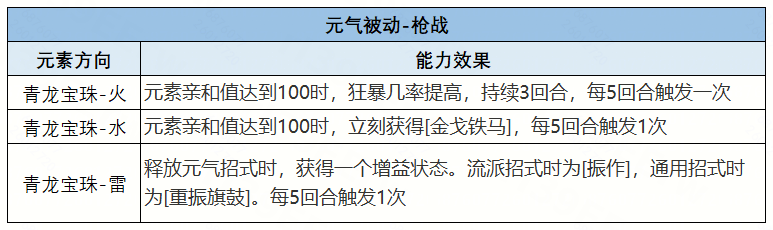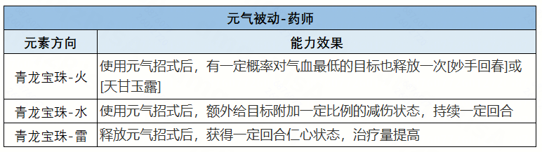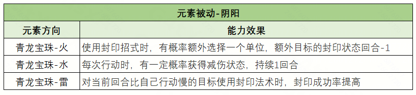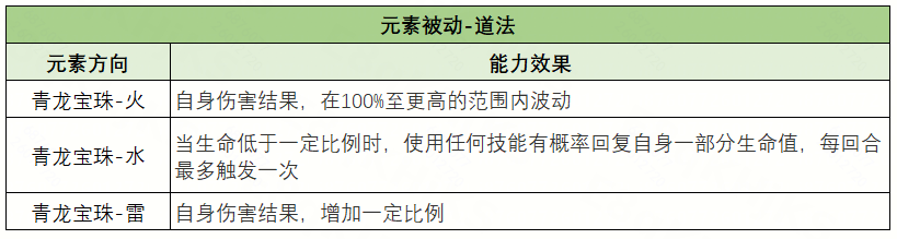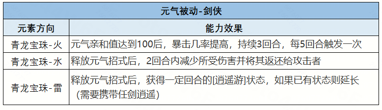 根据神器元素选择的不同,青龙宝珠可以为各门派加持不同的“元素被动”,拓展流派能力。当元素亲和达到目标值,或是释放元气招式后,门派还可获得“元气被动”,流派能力进一步增强,让后续回合更加精彩刺激。