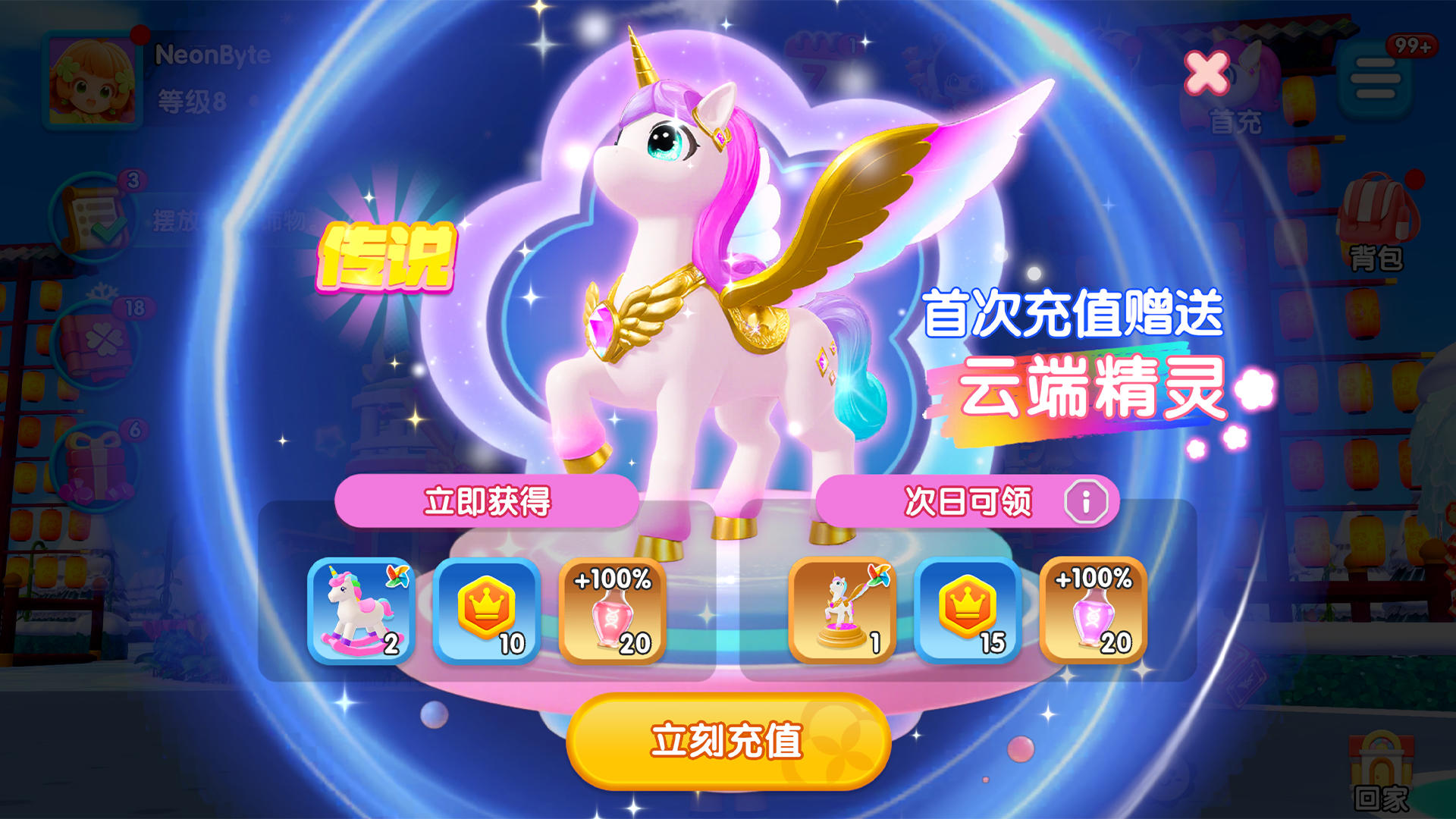 · 任意金额首充,即可永久获得传说级装饰物【云端精灵】,为你家园增添一抹灵动奇迹,并附赠海量资源道具!