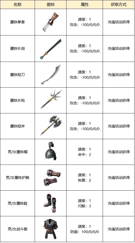累计充值88元可获得 墨铁战斗服、帽子、护腕、鞋