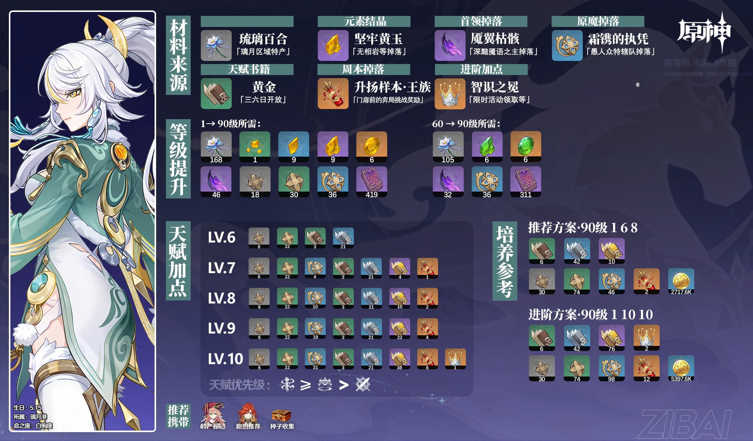 以上便是本期兹白角色材料攻略的全部内容了!如果觉得还可以的话那就请各位旅行者多多点赞收藏转发+关注支持一波!!!我们下期攻略再会!