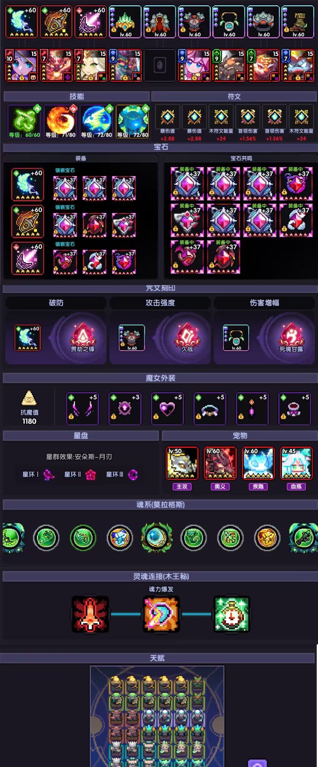 【魂力属性】优先点满首领伤害、木攻、暴伤值、护甲穿透,暴击值可以根据面板来加点。