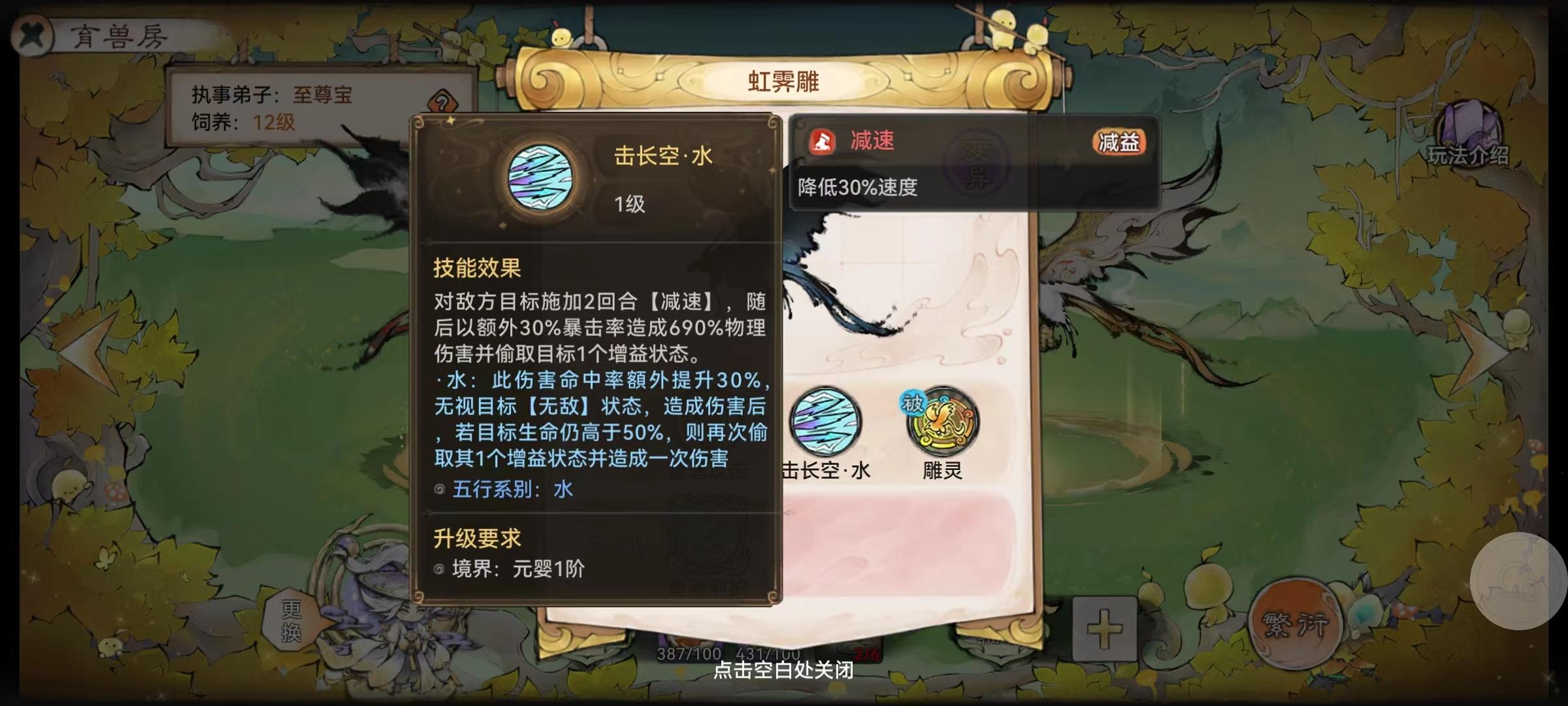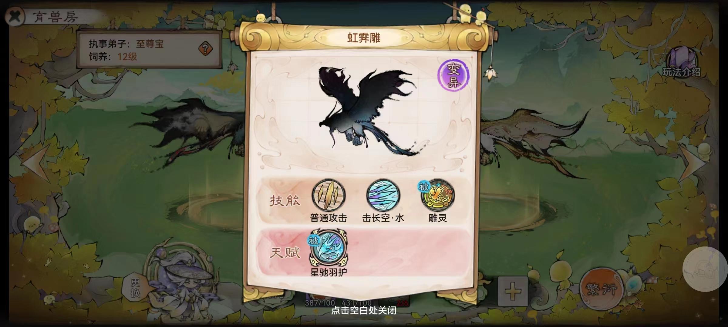 ②育兽房用于繁衍灵兽,红色品质灵兽繁衍有概率获得变异灵兽,变异灵兽会拥有变异技能。