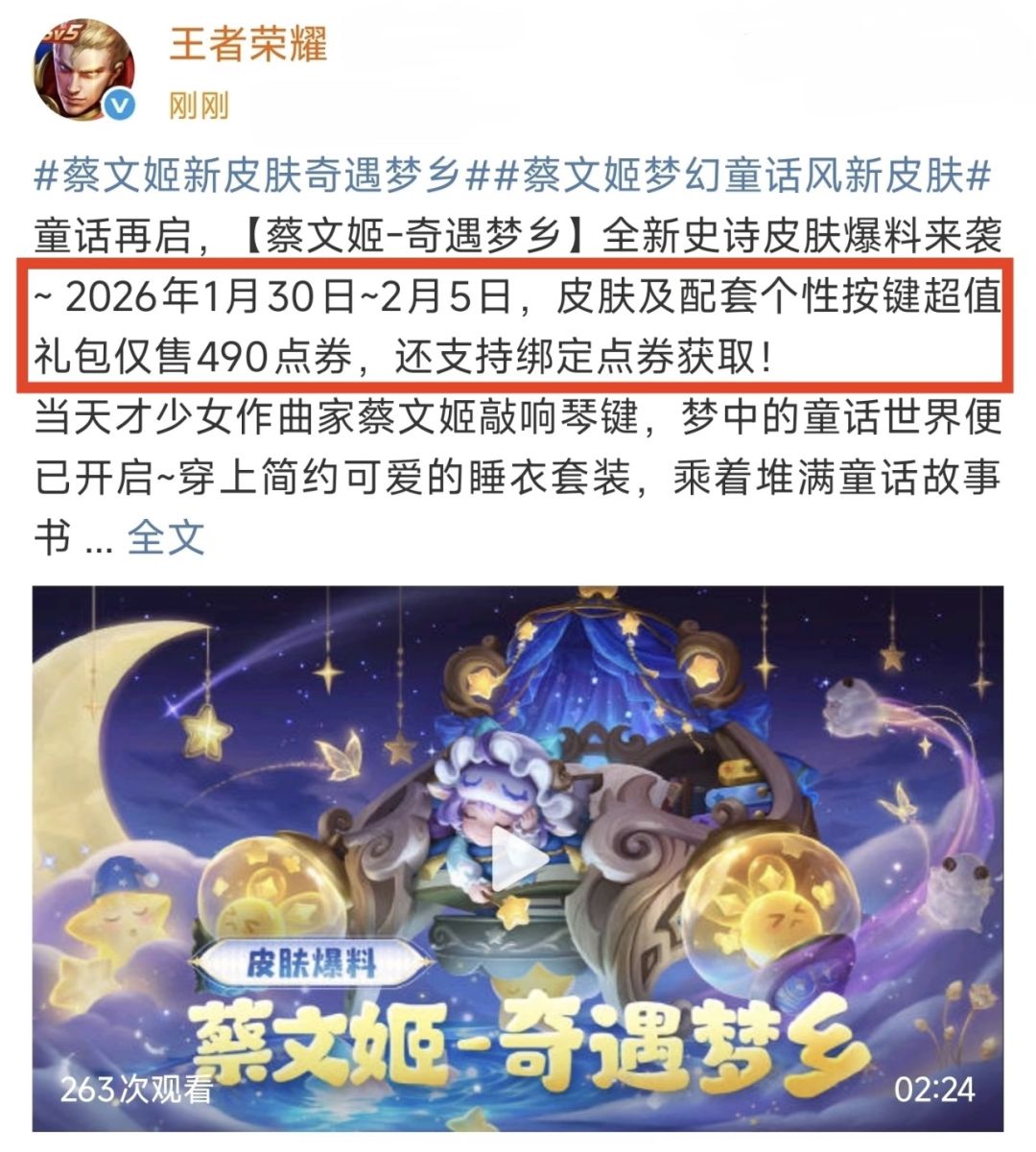 蔡文姬新皮肤真香预警 皮肤与按键仅490点券