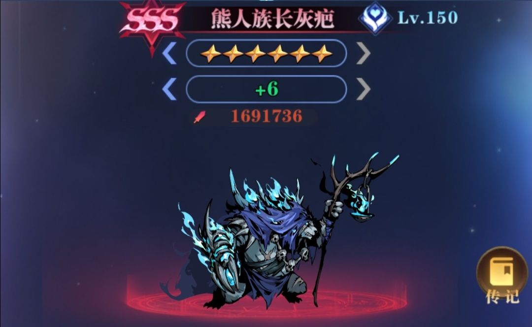 神器技能:开局释放,自身免疫负面状态一回合,不可驱散:附加持续全场被动效果,我方亡灵伙伴每击败一名敌人,与熊人族长同列的亡灵队友获得35%暴击伤害,可叠加。