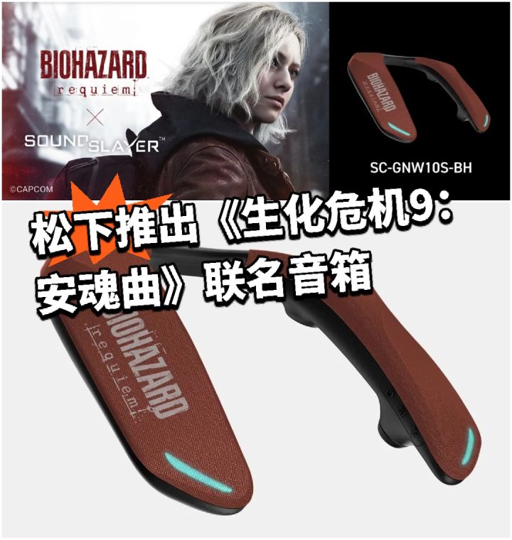 松下公司昨日正式宣布,将推出与卡普空游戏《生化危机9:安魂曲》的联名定制款颈挂式游戏音箱。该产品型号为【SC-GNW10S-BH】,采用深红色主题设计。