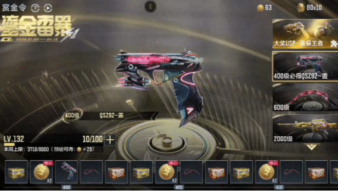 S1赏金令的老玩家回馈上线,在老玩家回馈里面,各位玩家可以根据上一期赏金令即S4赏金令的最终等级,按照5级、50级、100级、150级、200级、500级和1000级的档位领取相对应的奖励,大量赏金令积分卡、2026-魅影珍藏和2026-雷暴王者珍藏宝箱等你领取。老玩家回馈活动领取到的2026-雷暴王者珍藏宝箱可以助力你更快的合成USP-雷暴王者和高爆手雷-雷暴王者。