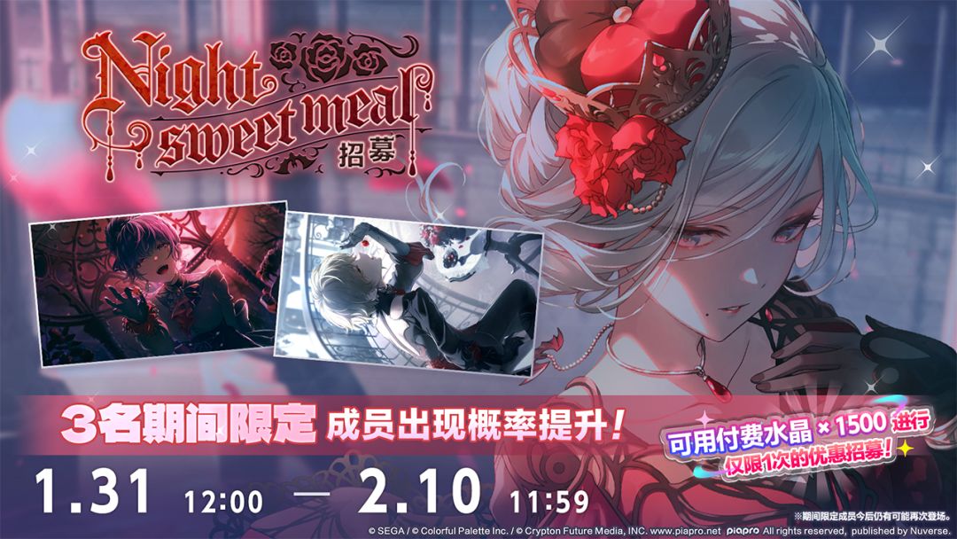 我们将于1/31 12:00起举办新成员登场招募活动「Night sweet meal招募」。
