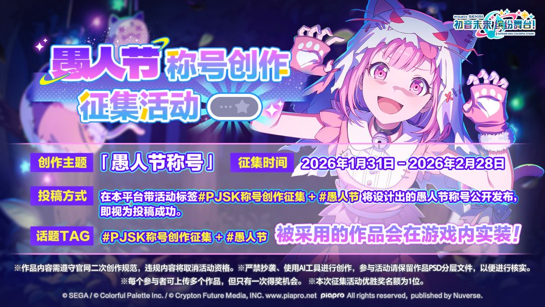 《初音未来:缤纷舞台》愚人节称号征集现已开启!