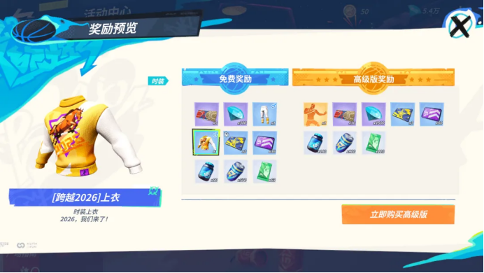 小队集结完毕将开启专属福利赛道,每天完成相应任务升级球友手册,即可领取免费时装[跨越2026]、限时保星卡、潮人券等。购买高级版还可获得专属双人庆祝动作[过招]、巅峰赛保星卡、钻石等更多好礼。