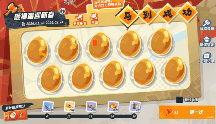 爆竹声里年味浓,米宝喊你一起砸福蛋迎新春啦,福蛋藏满多种惊喜,砸开就是新年好彩头!砸福蛋可随机获得钻石、巨星登场券、潮人券、巨星天赋卡自选包、群星汇集券等道具奖励,累计砸蛋积分还可获得2026春节限定时装[舞狮]。