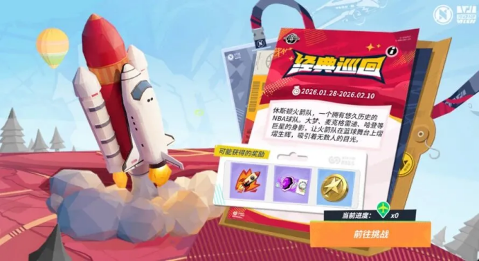新一期世界巡回赛活动开启,带你沉浸式重温休斯顿火箭队的故事。完成挑战收获限定涂鸦“火箭发射”、群星汇集券、明星天赋卡等好礼!
