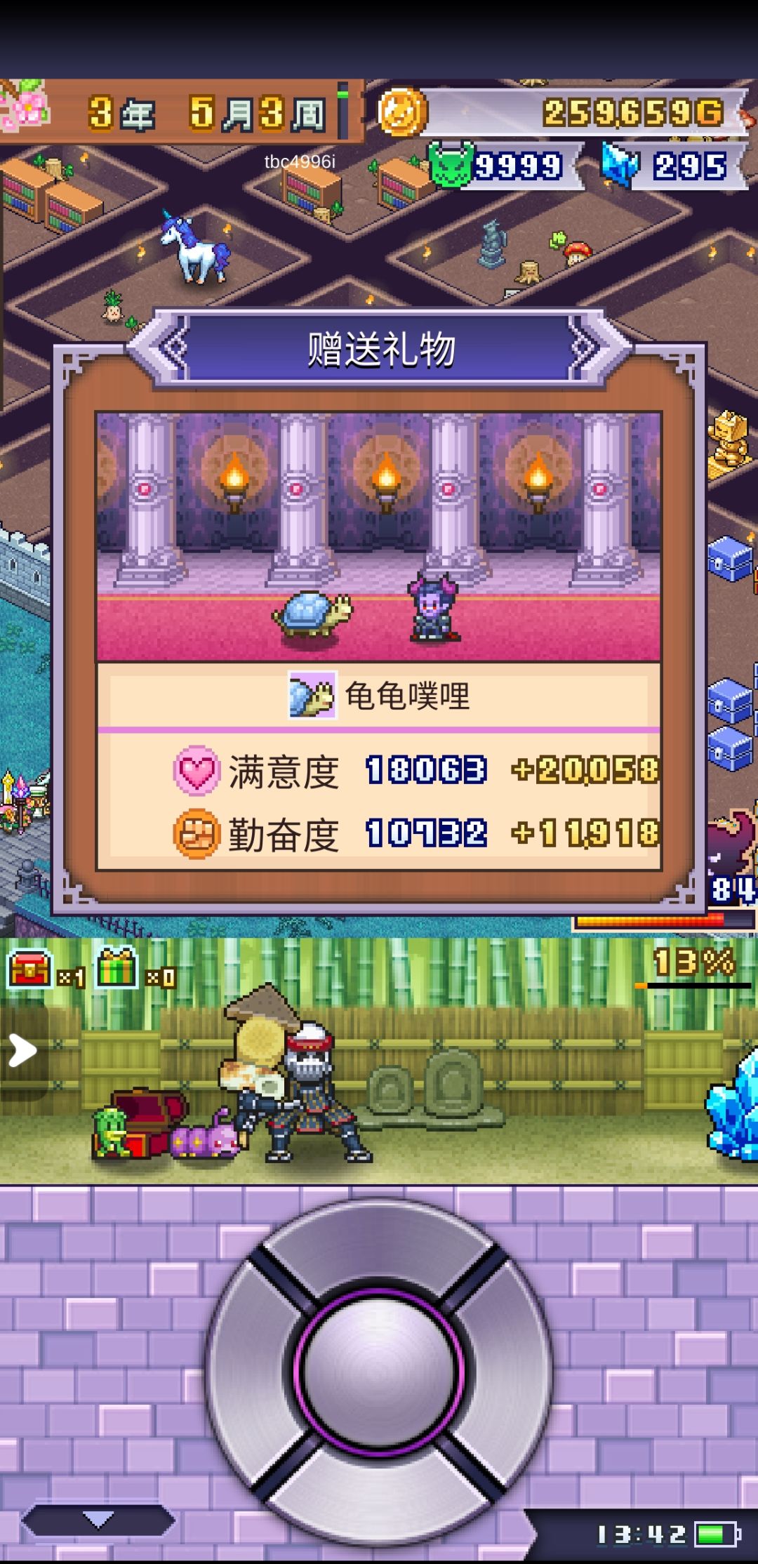 蛋糕是固定的,那送礼物就大有学问了。如果是怪物头上弹出来的对话框,根据礼物种类,每个礼物5~7勤奋度(如果勤奋度过高会大大降低)
